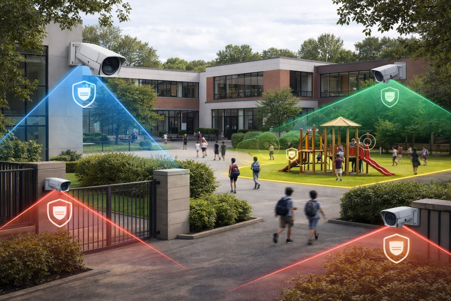 Modern educational institutions face unprecedented security challenges. Our AI-powered CCTV surveillance systems provide comprehensive campus monitoring with intelligent threat detection, unauthorized entry alerts, and real-time incident response capabilities. From classrooms and corridors to playgrounds and parking areas, every corner receives 24/7 protection. Advanced facial recognition identifies visitors, while behavioral analytics detect suspicious activities before incidents occur. Parents gain peace of mind through secure mobile access, while administrators receive instant alerts, creating a proactive security ecosystem that nurtures learning without compromise.